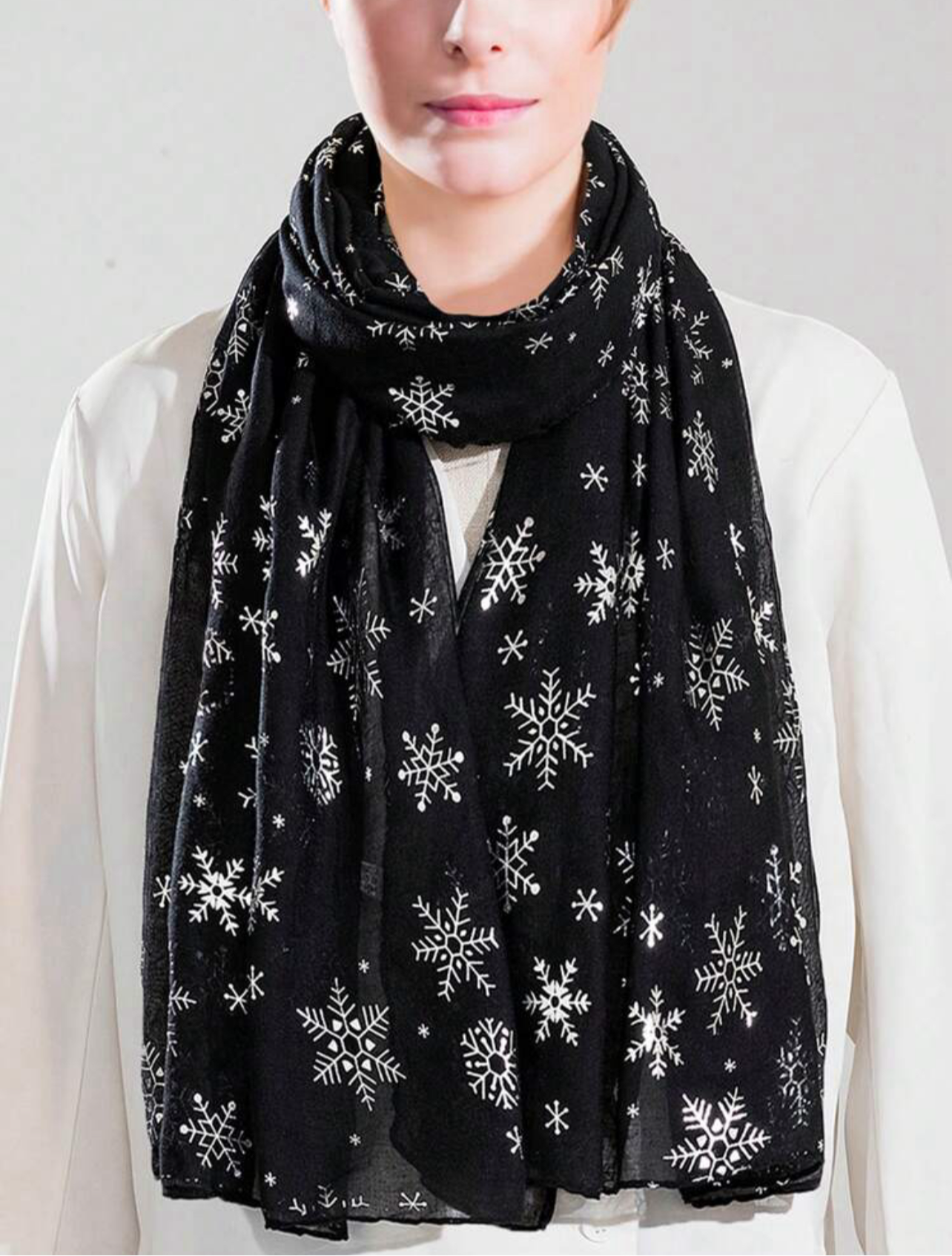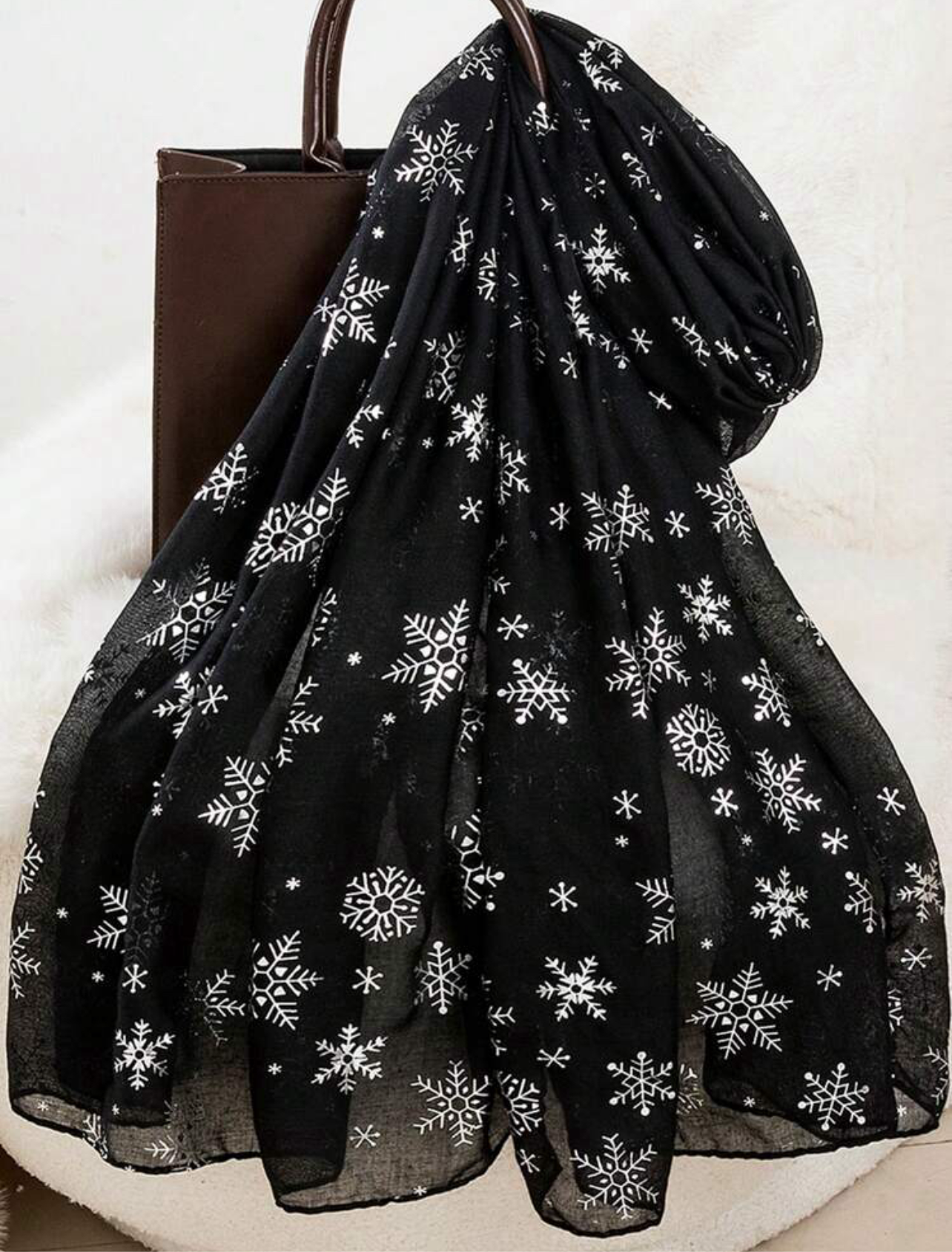 Bufanda con estampados navideños, perfecta para añadir un toque festivo y elegante a tus looks. Su textura suave y ligera la hace ideal para disfrutar de la temporada con estilo y comodidad.