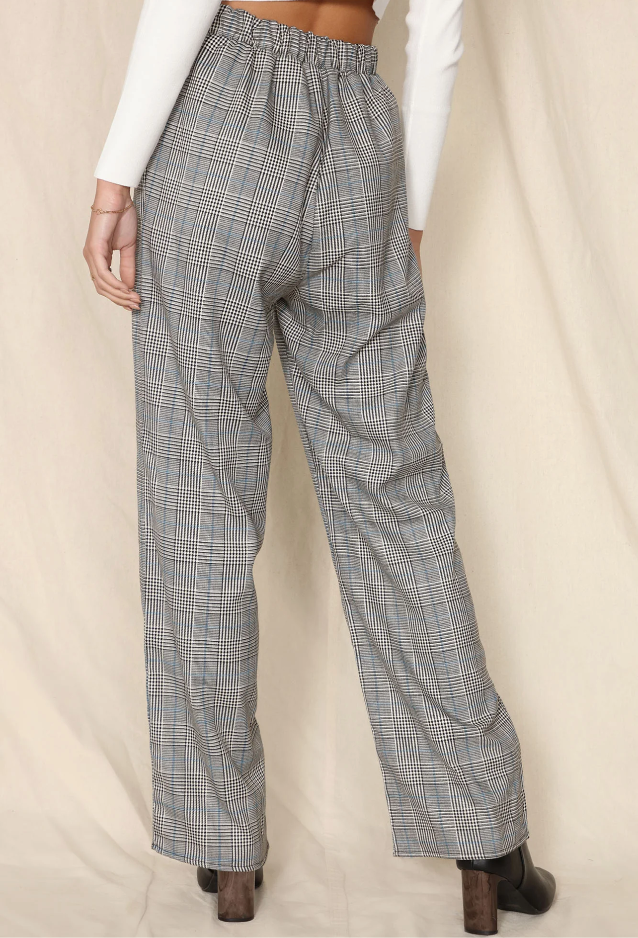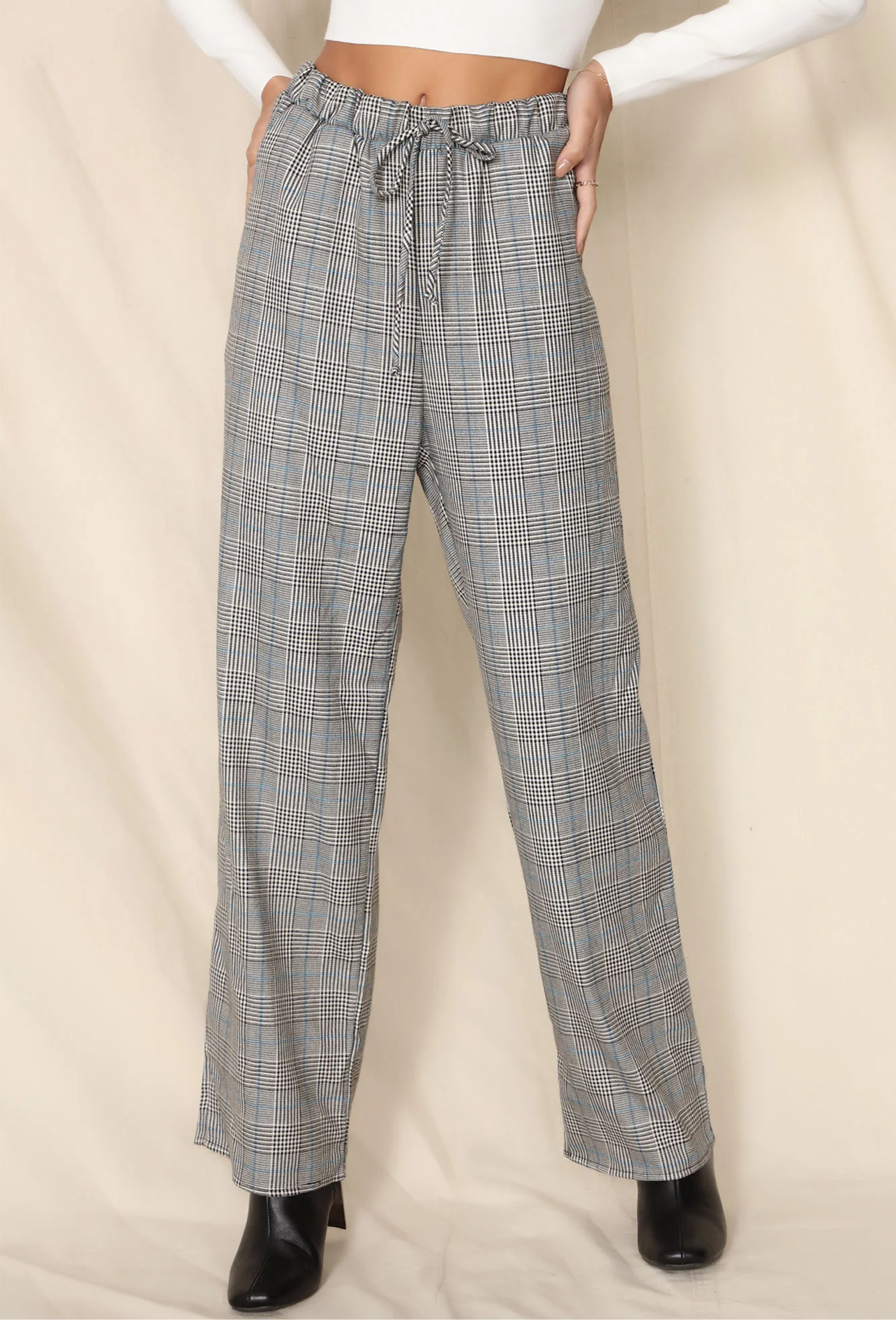 Pantalón palazzo de cuadros, cómodo y elegante con pretina ajustable. Ideal para un look moderno y versátil.