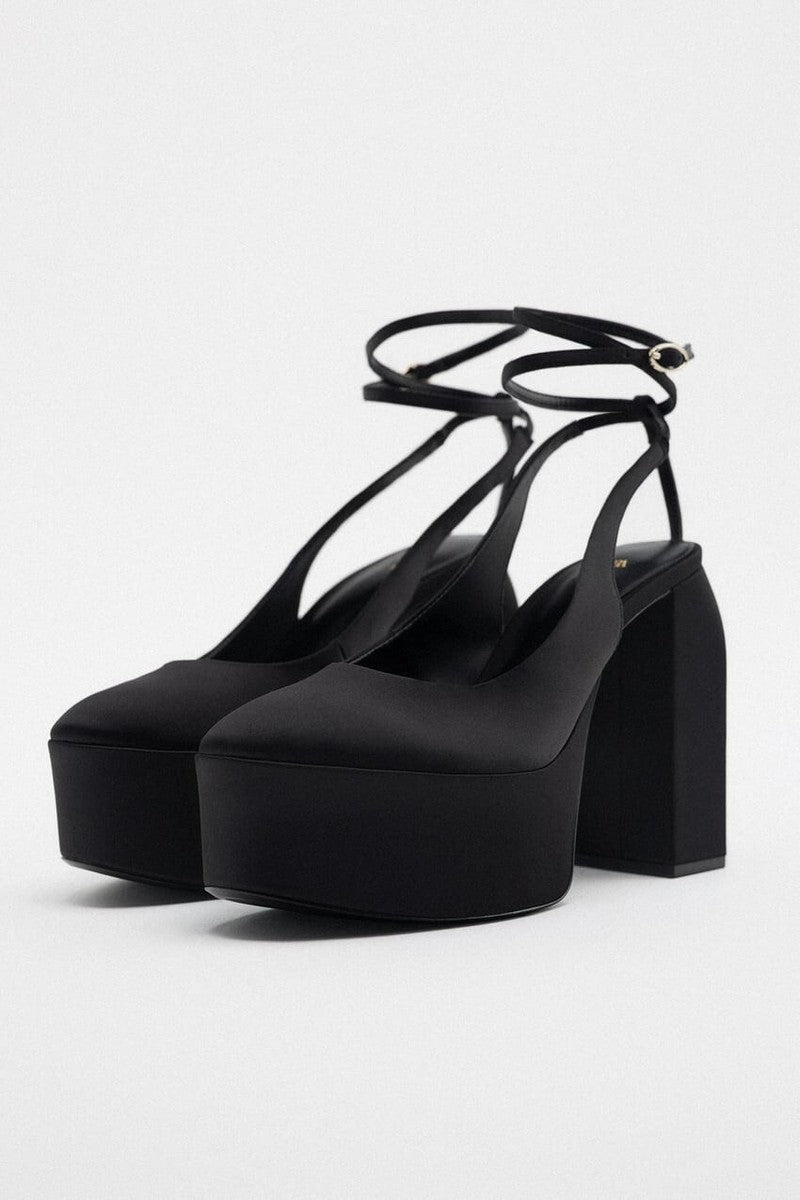 Plataformas Negras de Tacón Alto con Correa