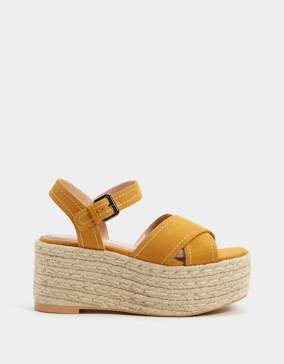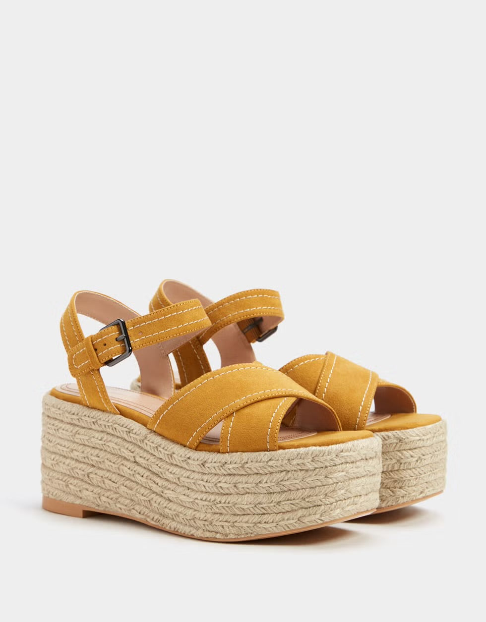 Sandalias de plataforma forrada en yute con correas cruzadas y cierre ajustable, ideales para un look fresco y casual.